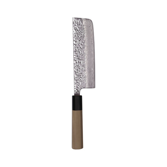 WDT Series Elite Warikomi Damascus Tsuchime Nakiri 170 mm - Mahogany Handle