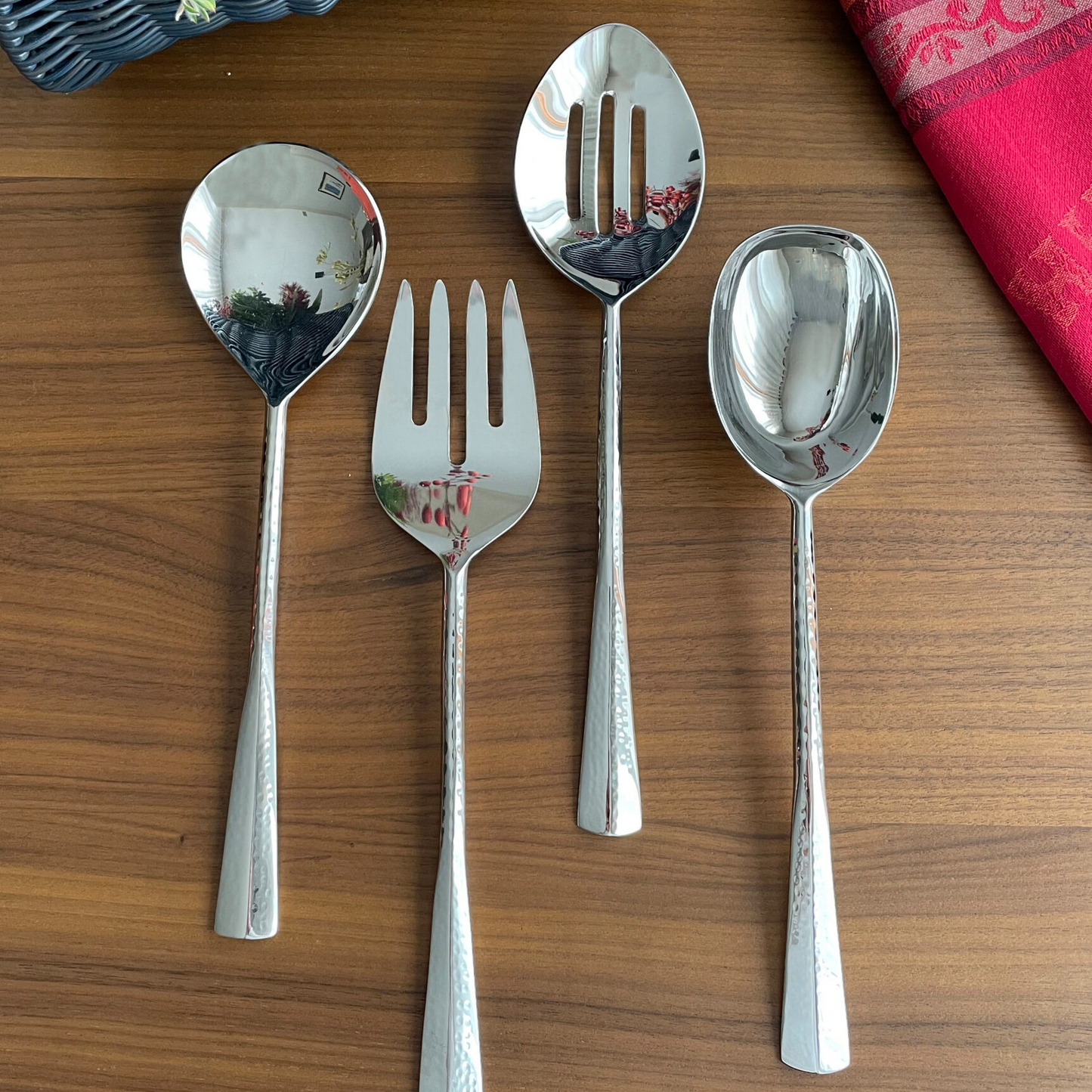 Exemplifying superior artisanship, the Alta Garden Vegetable Serving Spoon boasts a sleek design. With its micro hammered handles and highly polished metal, this spoon is a true work of art. Handcrafted and guaranteed for a lifetime of use, it adds refinement to any serving occasion. Transform your fresh salads into a visual feast with this elegant utensil. A must-have for every household, it seamlessly complements any home decor, be it traditional or modern. Designed for effortless entertaining, its understated elegance and graceful feel make it a timeless choice. Elevate your everyday table with any stainless steel serving accessory, such as a fork, spoon, or ladle, all handcrafted and guaranteed for a lifetime of use. Plus, they are dishwasher safe and require no polishing, making them the perfect wedding gift.