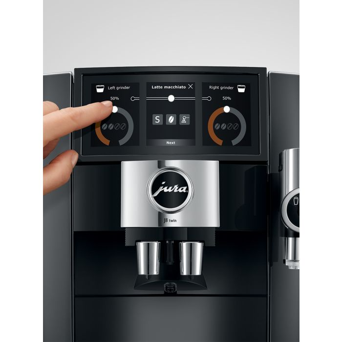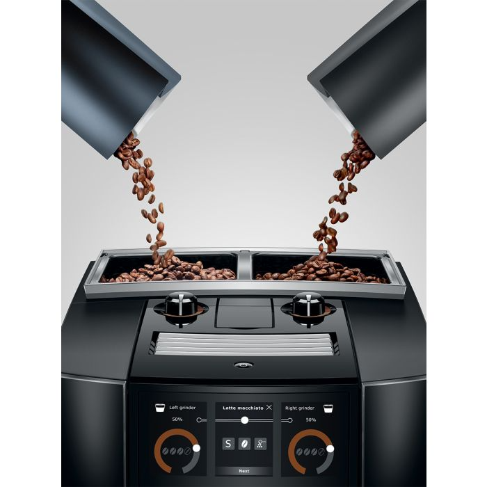 A regular or decaf specialty coffee? Dark espresso roast or mild lungo coffee blend? The J8 twin from JURA comes equipped with two high-performance conical grinders. Combining two coffee machines in one, this machine offers the best of both worlds.