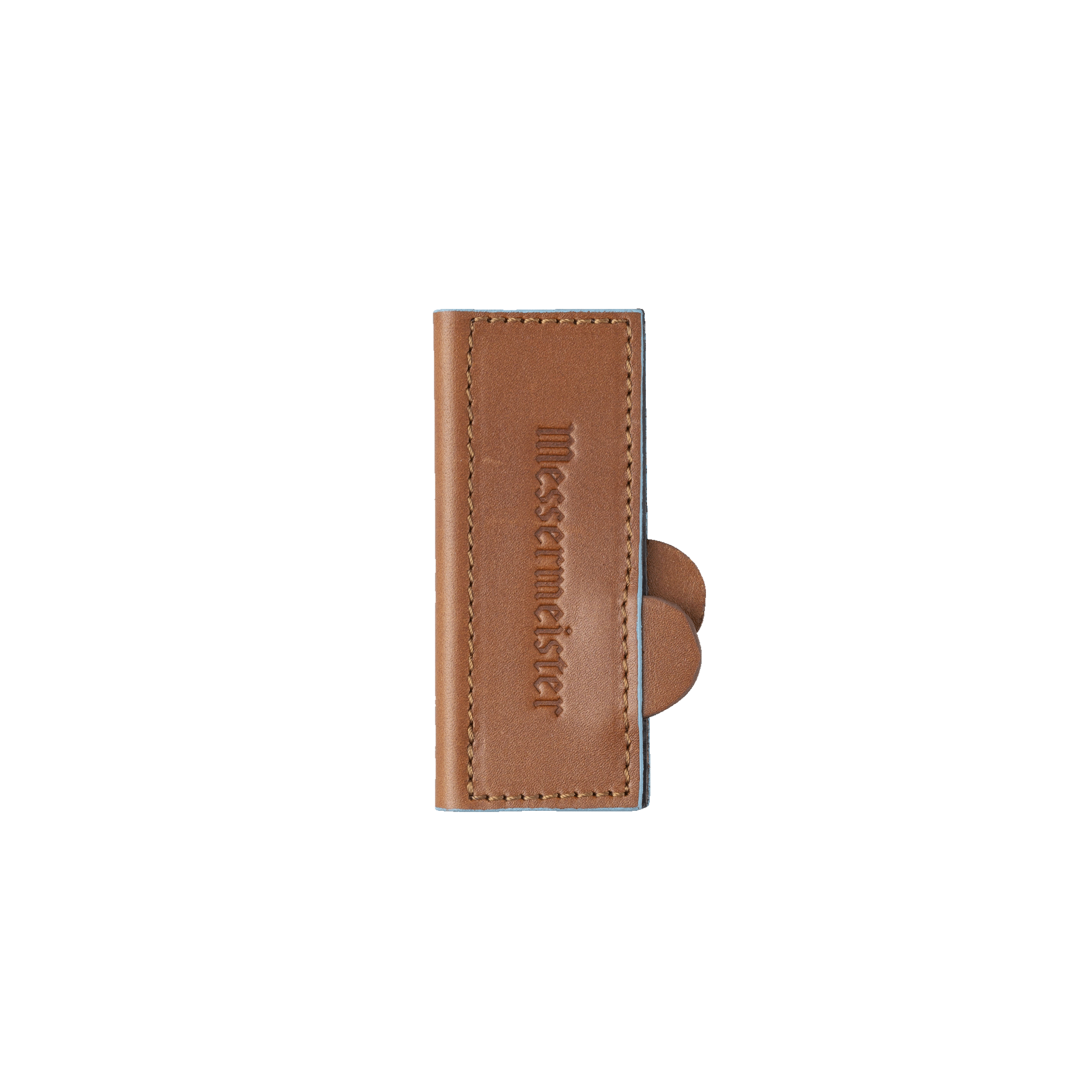The Messermeister Saddle Brown Leather Magnetic Edge-Guards combine timeless style with durability. Crafted from premium leather and featuring a magnetic closure, they provide elegant protection for your utility or boning knives. Preserve the sharpness and integrity of your blades no matter where your culinary tasks lead you.