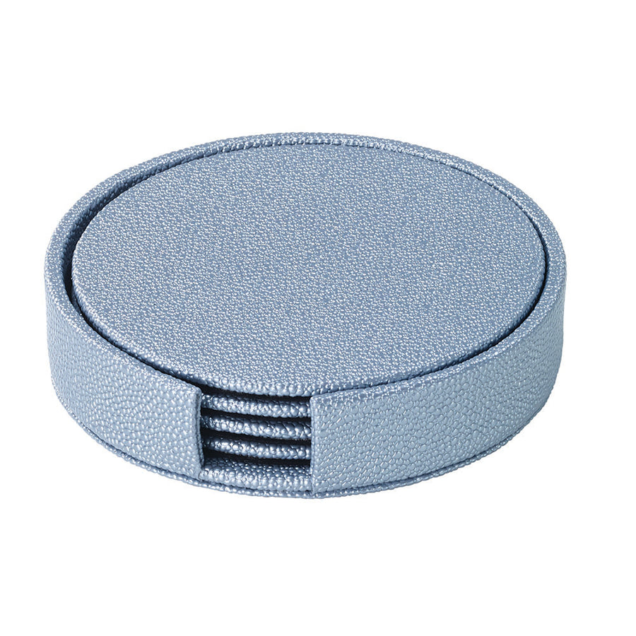 Constructed using the top-notch material found in Bodrum's popular Skate placemats, this set of 4 coasters includes a useful holder and boasts a safeguarding felt bottom to protect against scratches.